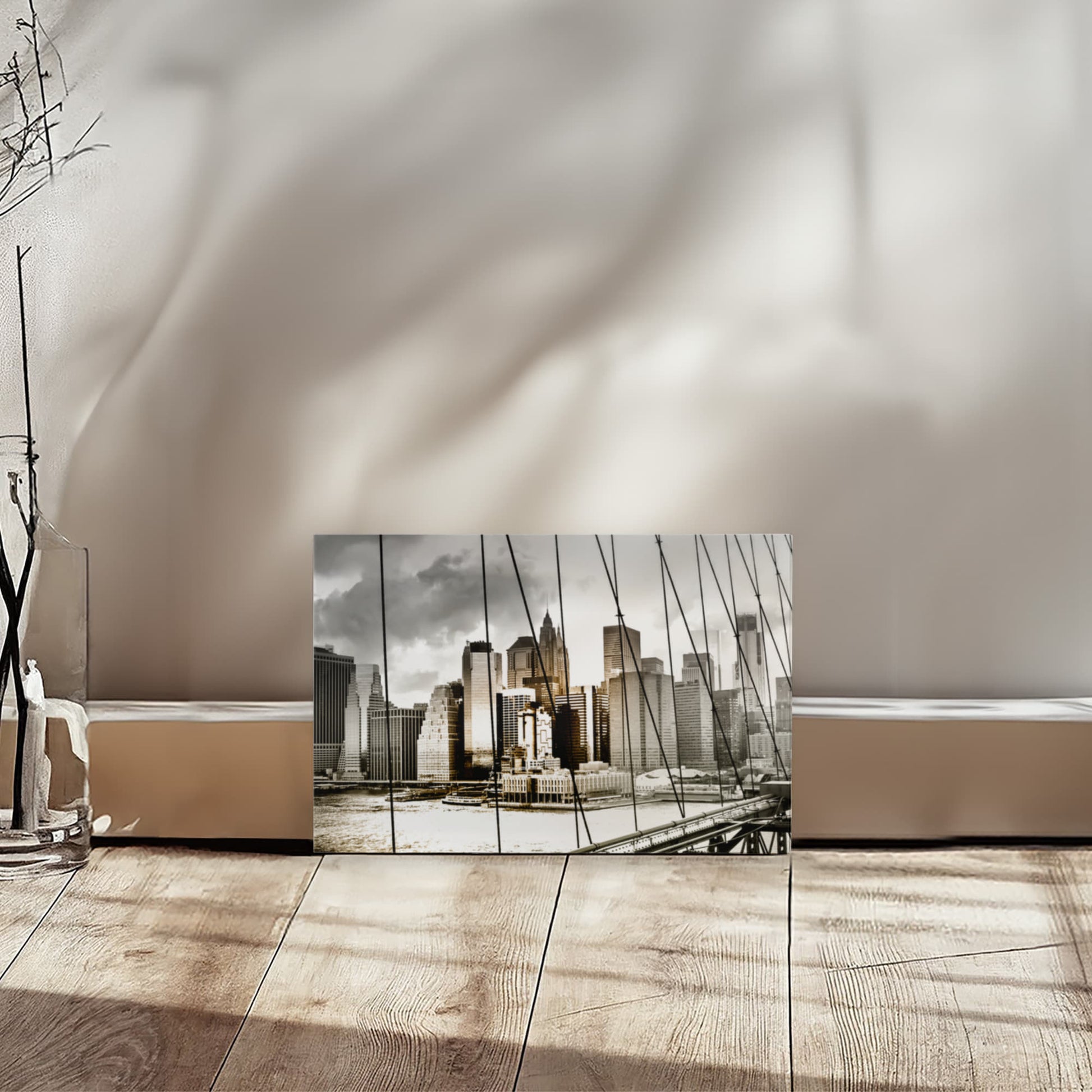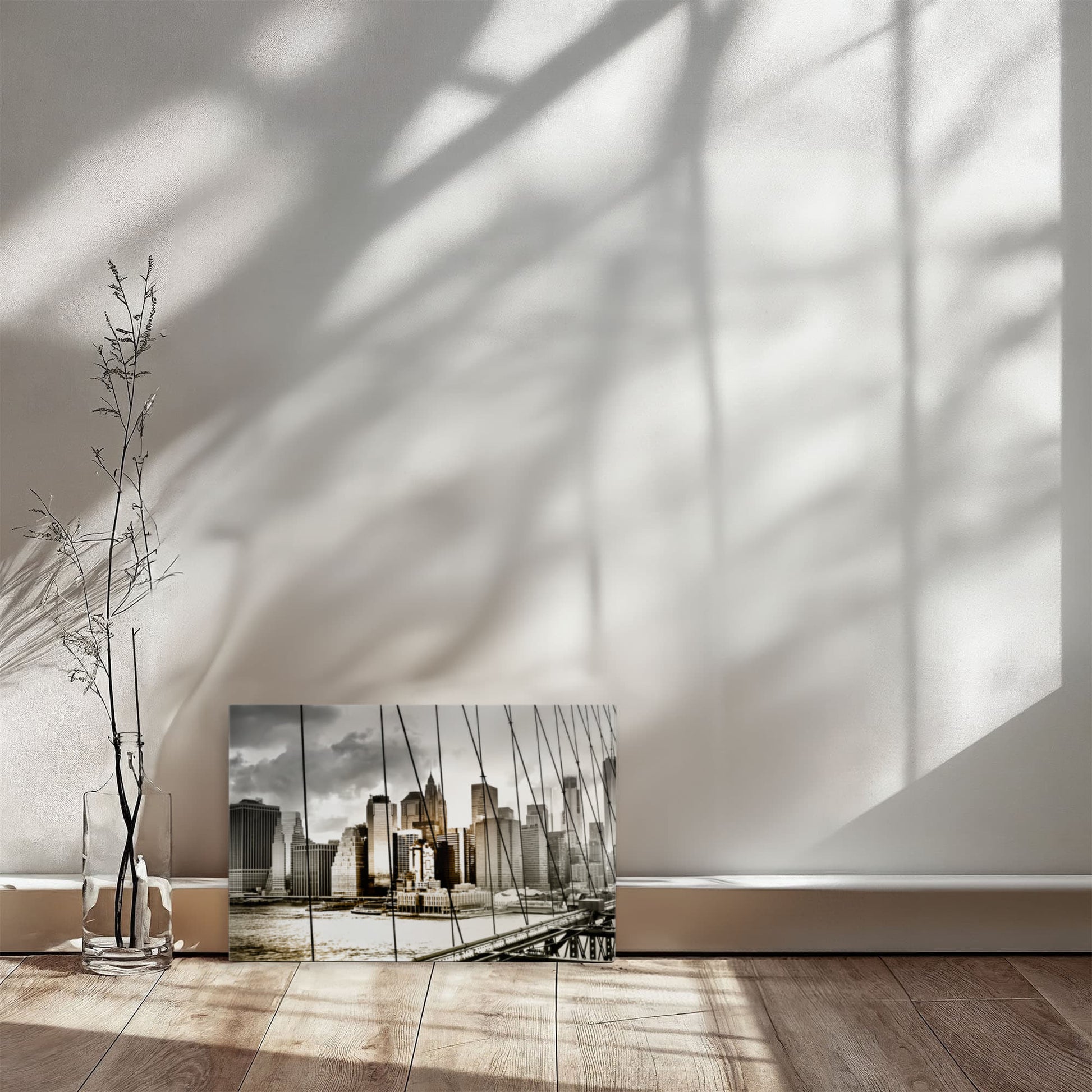 Capture the bold energy of New York City with this stunning black and white canvas wall art, featuring a dramatic skyline view through the Brooklyn Bridge. Printed on high-quality gallery wrapped canvas, this piece adds urban sophistication to any living room, office, or modern space. A perfect gift for city lovers and architecture fans.
